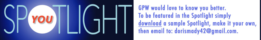 While it’s always lovely to meet a new Pen Woman, you don’t have to be a new member to be in the Spotlight. If you attend our events and people are hard-pressed to recognize you, perhaps it’s time to appear in the Spotlight! As we all grow and it could be fun to hear what new paths you are pursuing.