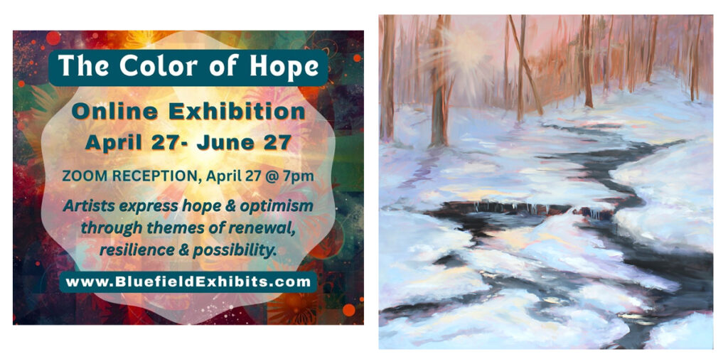 Doris has also been accepted in Lisa D’Amico‘s “Color of Hope” online art exhibit hosted at www.BluefieldExhibits.com. Doris’ entry: Spring Thaw, has won Honorable Mention. 36″x36″. ZOOM Art Reception: April 27 at 7pm. Show runs April 27-June 27.